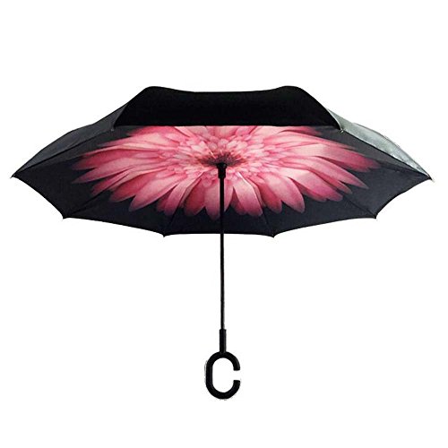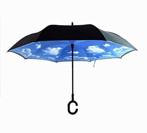 -. Title : Inverted Umbrella, Glodeals Travel Umbrella Strong Windproof/UV Protection Creative Double Layer Inside Out Reverse Folding Umbrella Self Standing for Car Rain Protection C Shape Handle