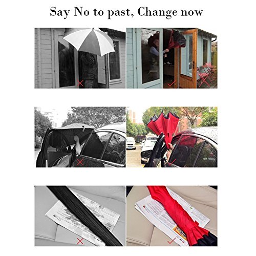 -. Feature : Glodeals Inverted Umbrella + Umbrella Waterproof Cover for car as one Set: New inverted design, it opens and closes apex down, making getting into and out of a car or other covered area much easier all while shielding you from the rain longer / Drop free- Upon collapsing inverted umbrella, its dry side is exposed while its wet side faces inward, sequestering the water temporarily to keep it from going everywhere / Self standing- it stands up on its own, eliminating the need for propping it up against a wall / Rain water is neatly collected in this cup-like shelter and runs down the center of the pipe via an inlet in the environmentally-exposed section / Should the wind come along and attempt to invert your umbrella, it will be thwarted by the fact that it is already inverted