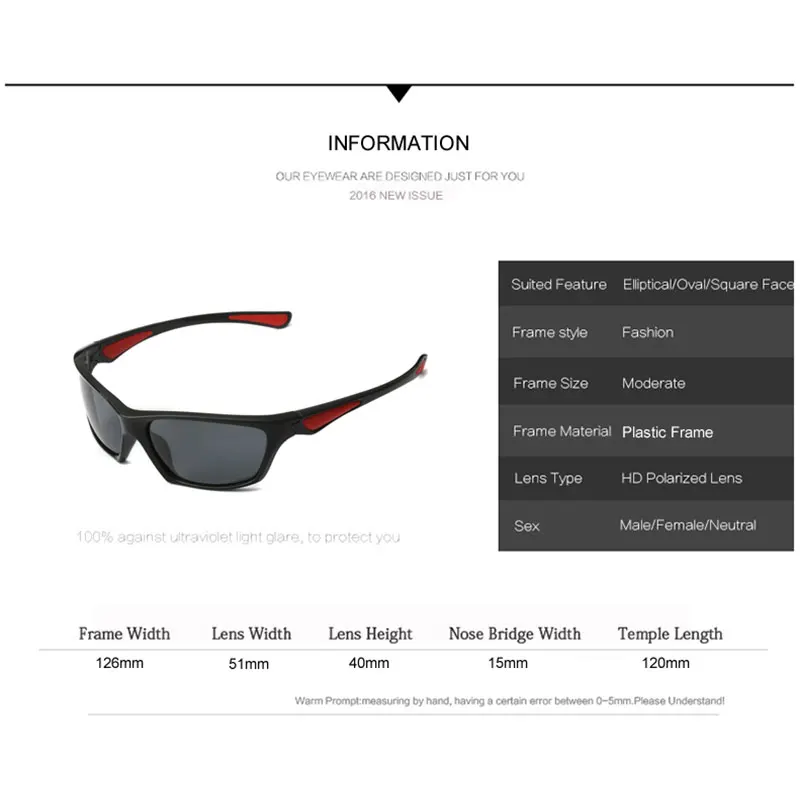 Frame Material: Plastic Product Feature: Stylish,Lightweight,Comfortable,Fashion Accessories Product Function: UV Protection Against Glare Harmful UVA/UVB Product Certificate: CE, FDA,UV400 About Size: Inner Frame Size 126mm