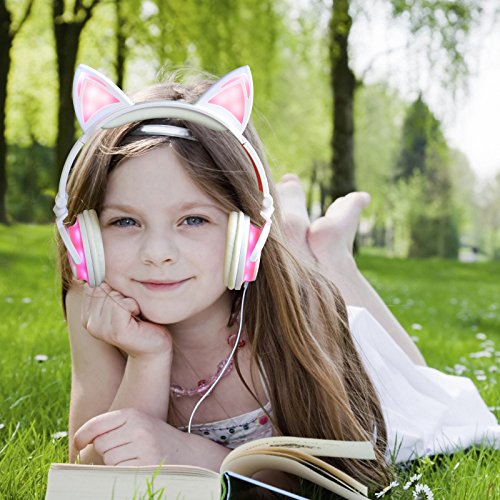 Cat Ear Headphones Pink Glowing Lights with Charging Cable for iPhone 6/6S, Android Phone, Tablet, PC Computer