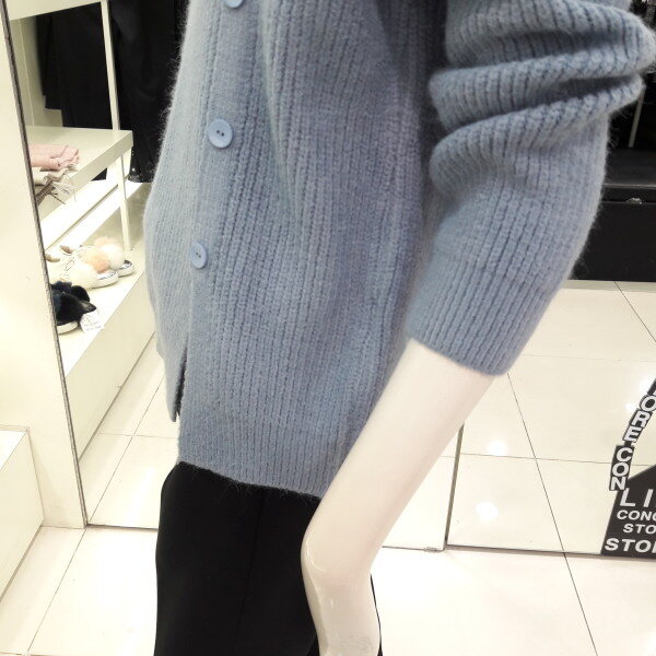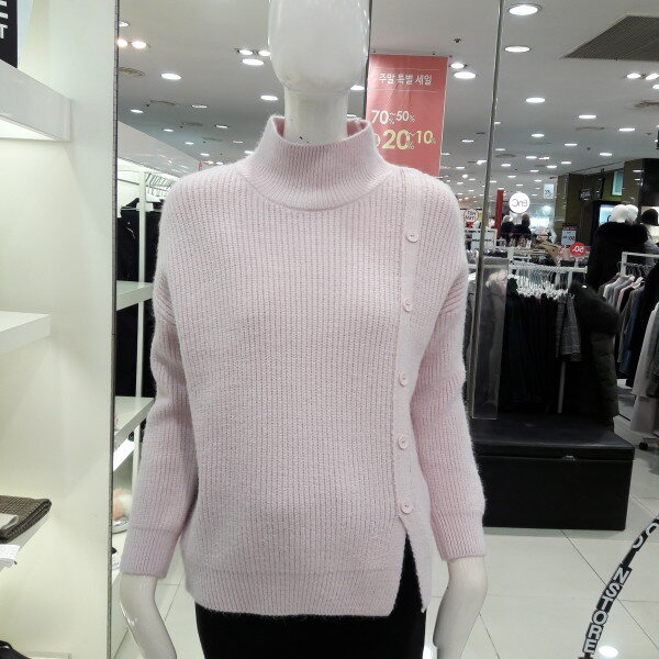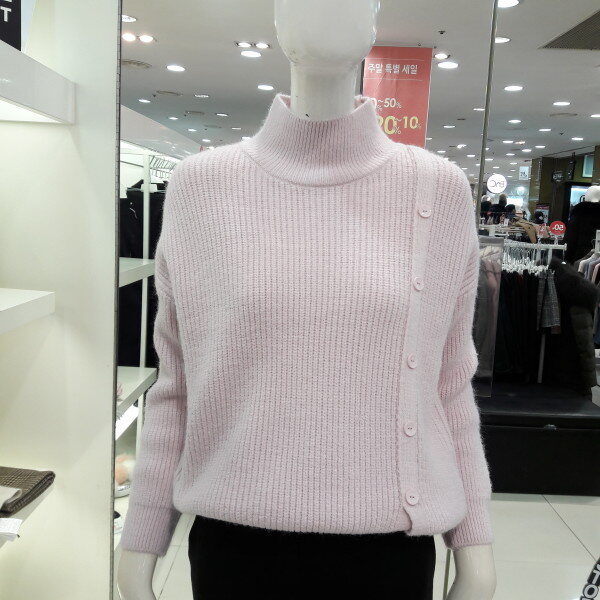 한쪽으로 단추포인트가 세련된 모직니트입니다 나그랑 스타일이라 착용시 편하며 모직소재로 따뜻해보이는 여성스런 스타일입니다 슬랙스 스커트에 연출해보세요