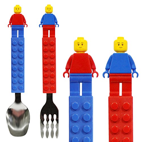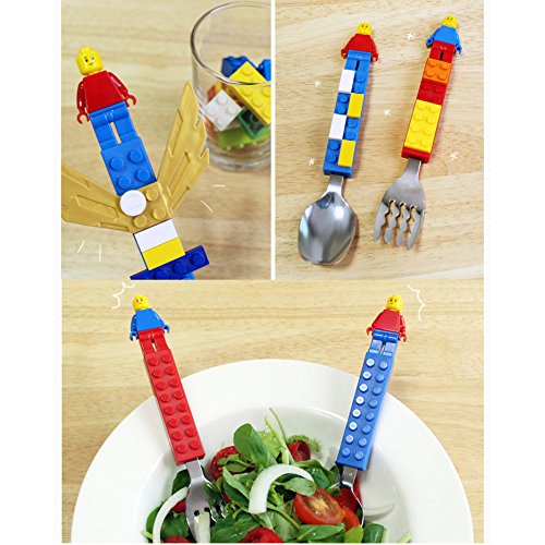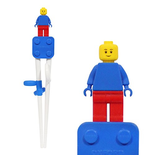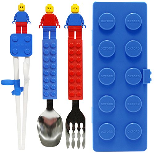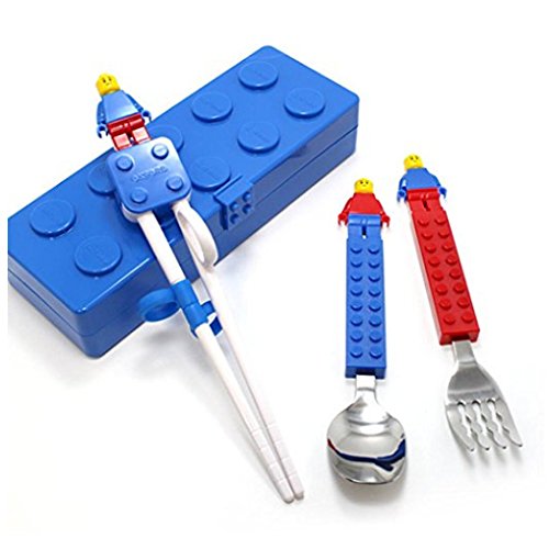 Brick Figure Design Oxford Training Chopsticks Spoon Fork Case Set for Right-hand Children Kids (BlueCaseSpoonForkChopsticks)