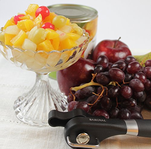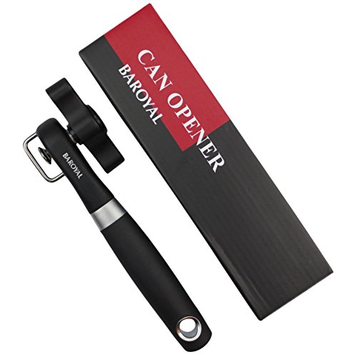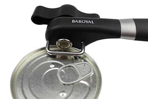 Baroyal Safety Can Opener – Manual Smooth Edge Side Cut Tin Can Opener – Bonus eBook - Food Grade Commercial 420 Stainless Steel blades, Won’t touch Food – Soft Grips Handle - Easy To Turn Knob