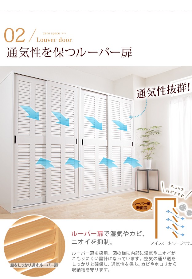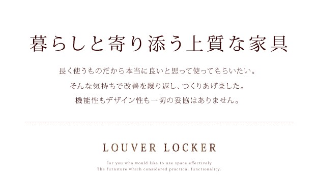 商品について:開閉スペースのいらない引き戸式ロッカー。他の家具がすぐ側に置いてあっても扉がぶつかることがありません。限られたウォークインクローゼット内でも便利です。湿気やにおいがこもりにくい本ルーバー式扉で通気性も抜群☆上棚付きでバッグやケース(奥行き内寸49.5cm)などもしまえます。