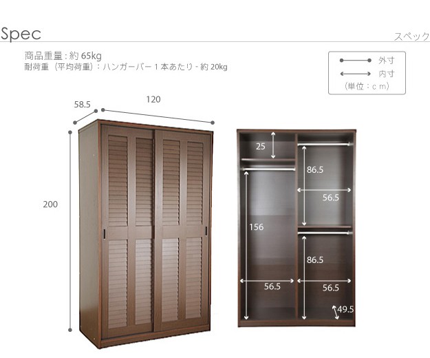 サイズ(cm):幅120x奥行58.5x高さ200