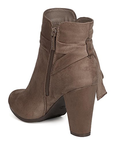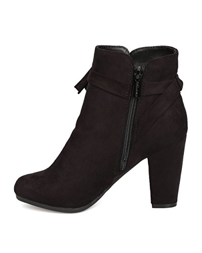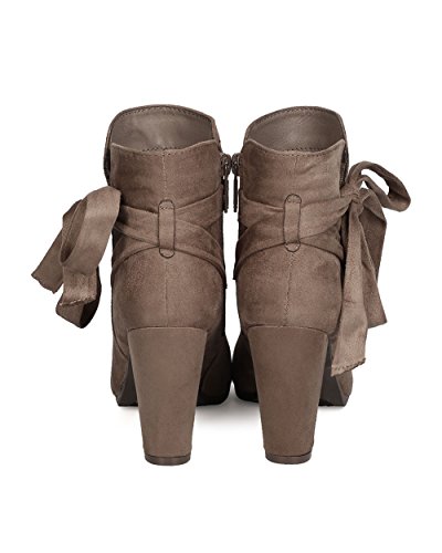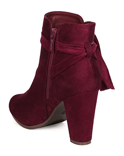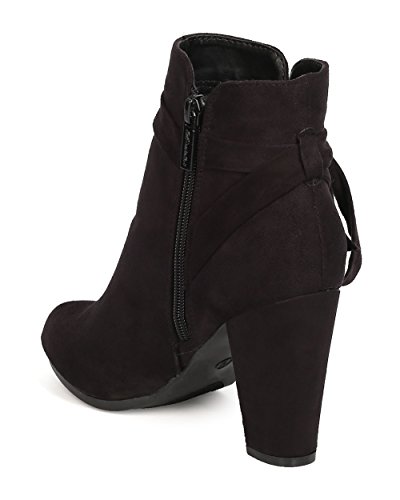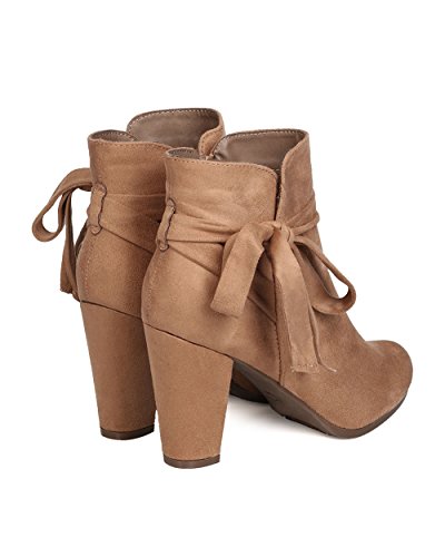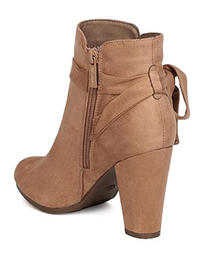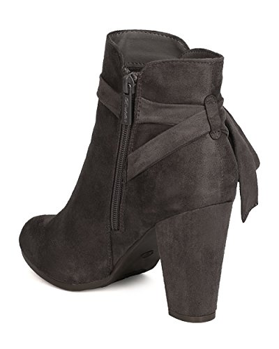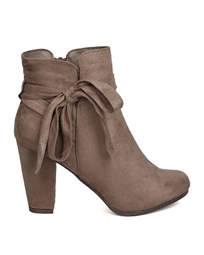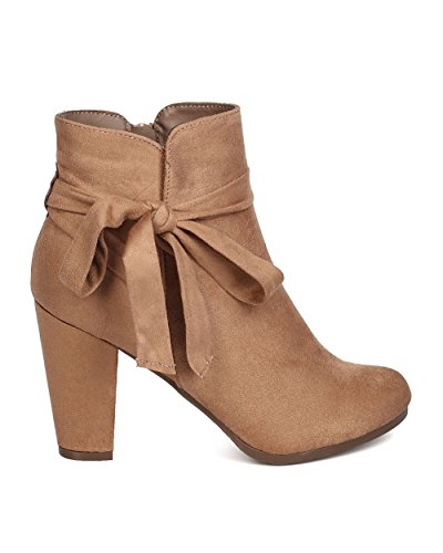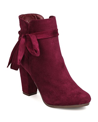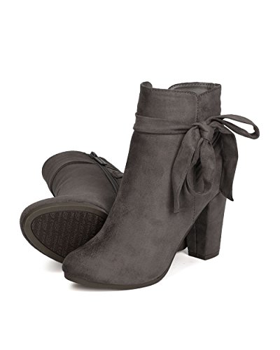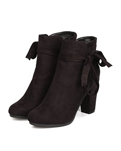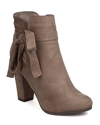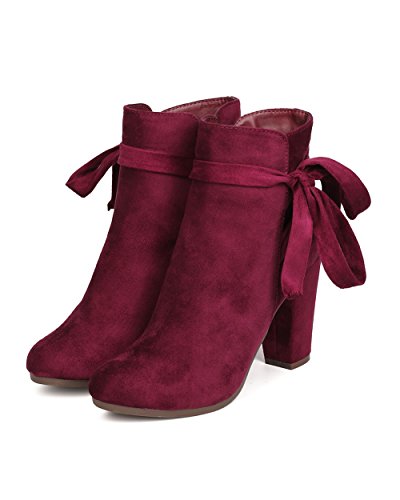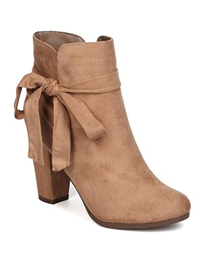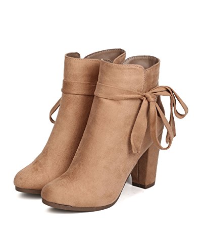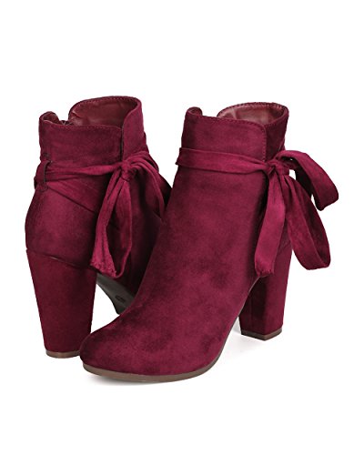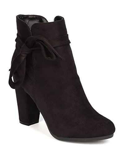 Product Description These super cute booties are made with a faux suede upper, almond toe, and wrapped block heel. Wraparound bow tie is added for a feminine look, and finished with a side zipper for easy slip on and off. 0