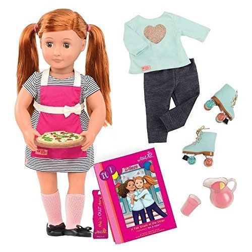 -. Feature : 18" COLLECTIBLE NOA DOLL - Get ready for some fun and fashion over at the diner with darling Noa! She has beautiful, long red hair, eyes that open and close, poseable arms and legs, and two retro-themed outfits. Add Noa's playful look to your existing Our Generation doll collection or begin your collection today! / COMES WITH GREAT STUFF! - The Our Generation poseable Noa doll includes 1 dress, 1 apron, 1 pair of knee high socks, 1 top, 1 pair of jeggings, 1 pair of shoes, 1 pair of roller skates, 2 rubber hair bands, 1 pizza tray, 6 pizza slices, 1 pizza cutter, 1 glass of pink lemonade, 1 pink lemonade pitcher with juice and lemons slices inside, 1 book, and 1 bookmark. / FULLY COMPATIBLE - Noa's clothes and accessories are fully compatible with most 18" dolls, including American Girl dolls and accessories.