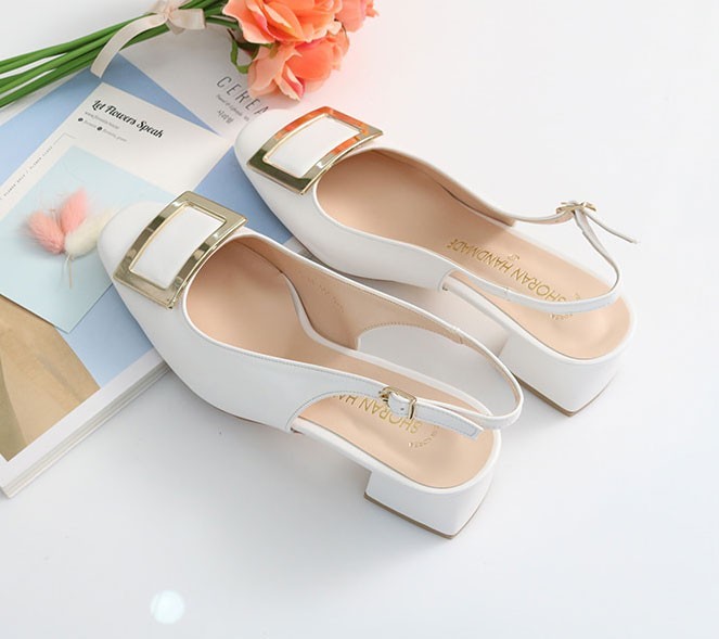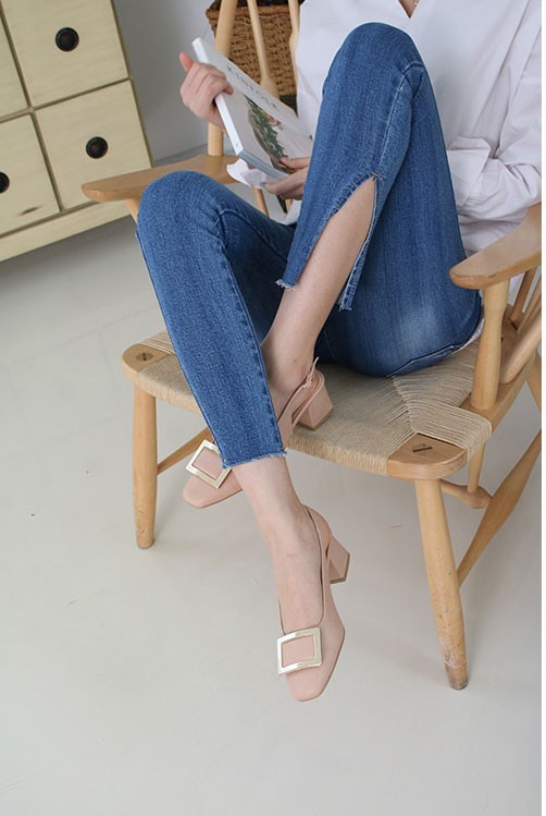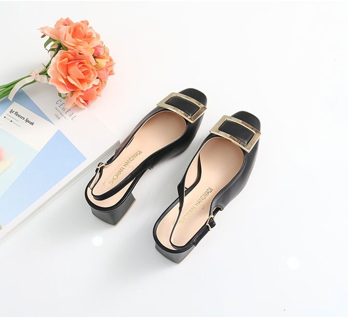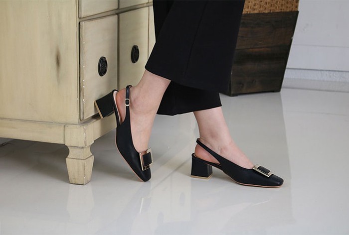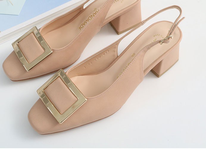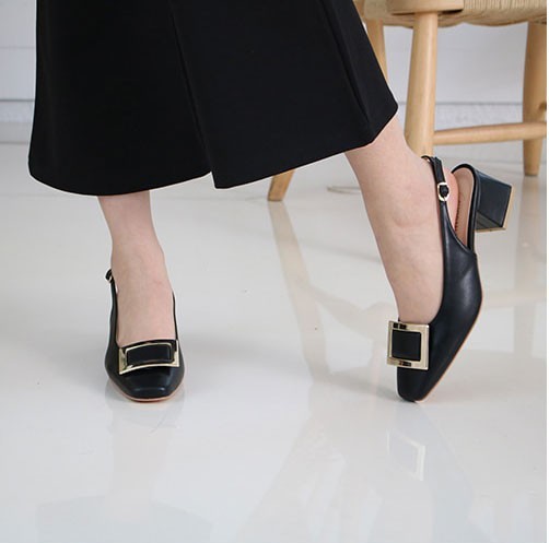 商品名:パンプス レディース バックル スリングバック 太ヒール チャンキーヒール 2018 春 ファッション 靴 婦人靴
