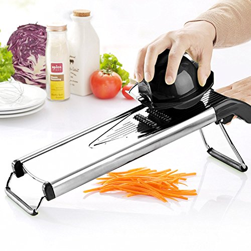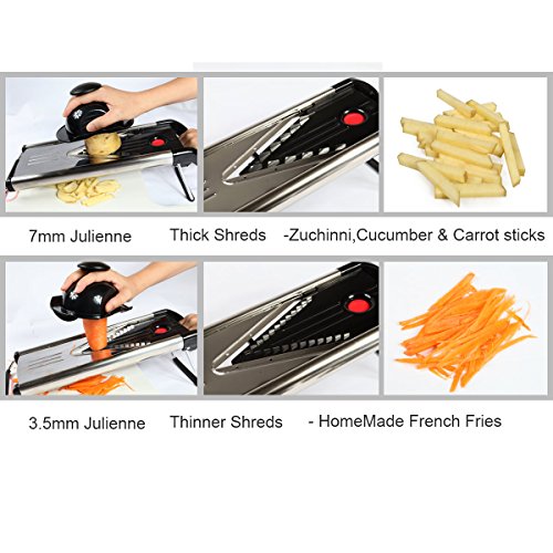 Makes prep time a breeze: create crispy home fries, julienne carrots for salad, or slice apples for a pie grandma would be proud of.heavy duty stainless steel frame and blades are made to last a lifetime. forget the cheap plastic mandoline slicers. this one will outlast them all.