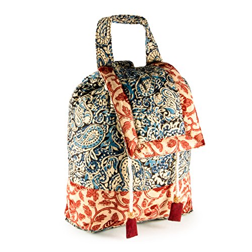 -. Title : Handmade Indigo Blue und Maroon Kalamkari Stoff Rucksack