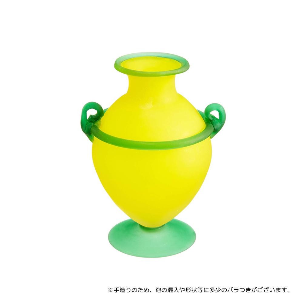 ハンドメイドの花瓶です。 製造国:中国 素材・材質:ソーダガラス 商品サイズ:Φ90×H135mm(突起部含む) ※サプライヤー直送品 ご注文後3~4営業日後の出荷となります【商品名】ハンドメイドフラワーベース イタリアンカラーベース 花瓶 MC-011YE