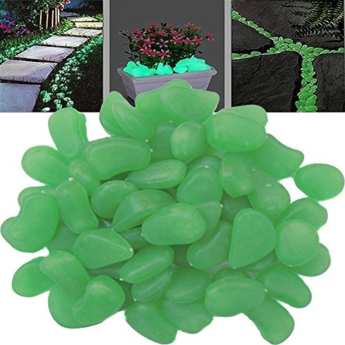 200 Pcs Man-made Glow Pebbles Stone Luminous Decorative Stones for Garden Walkway Yard & Fish Tank decorative stones (Green)