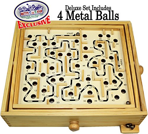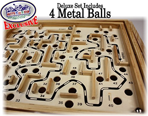 -. Binding : Toy -. Brand : Matty's Toy Stop -. Color : Natural Wood -. EAN : 0638037707700 -. Feature : Deluxe 60 Hole Wooden Labyrinth Game comes with 4 metal balls! / Made of high wood and has a smooth mechanism with a rigid and perfectly angled bottom. / This game will give you hours of fun and challenge no matter what age you are. / Makes a great gift & is perfect for schools, work, home, playrooms and so much more! / For Ages 6 and up - Great fun for the whole family! - Game measures 13.5" x 12" x 3" -. Genre : Strategy Games -. IsAdultProduct : 0 -. Label : Homeware -. Manufacturer : Homeware -. MPN : 1115-MTS -. PartNumber : 1115-MTS -. ProductGroup : Toy -. ProductTypeName : TOYS_AND_GAMES -. Publisher : Homeware -. Studio : Homeware -. Title : Matty's Toy Stop Deluxe Large Wood Labyrinth Game (60 Hole) with 4 Metal Balls -. UPC : 638037707700