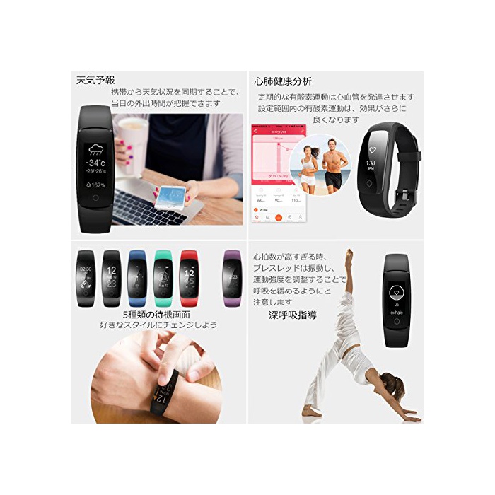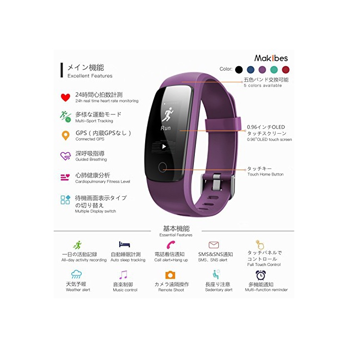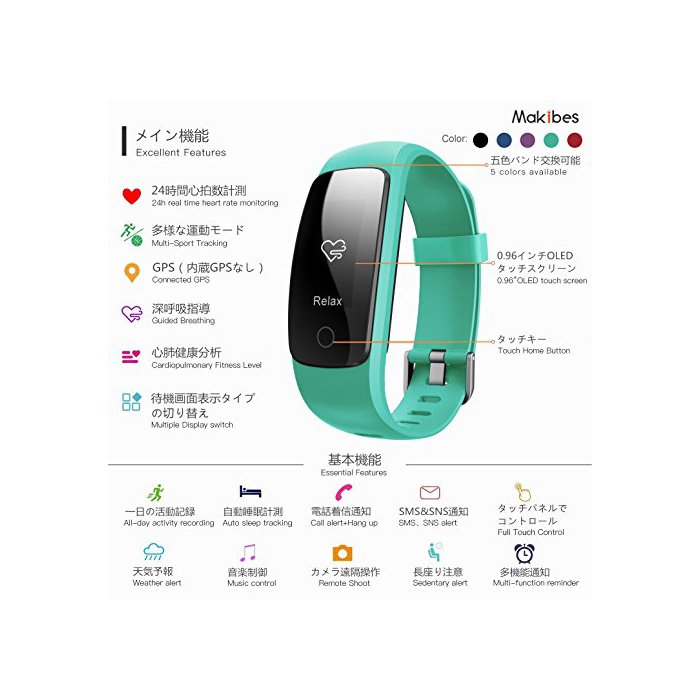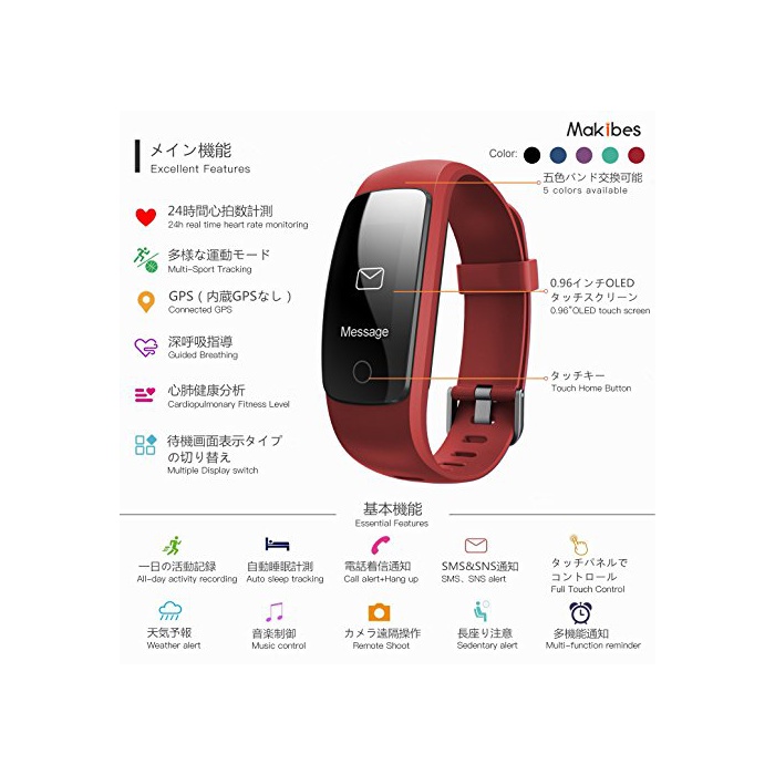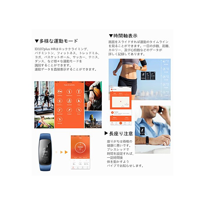 원본상품명: Makibes ID107 スマトブレスレット スマトウォッチ 多機能 腕時計 Bluetooth 日本語アプリ iPhone/Android 活動量計 計 心拍計 睡眠モニタ 健康