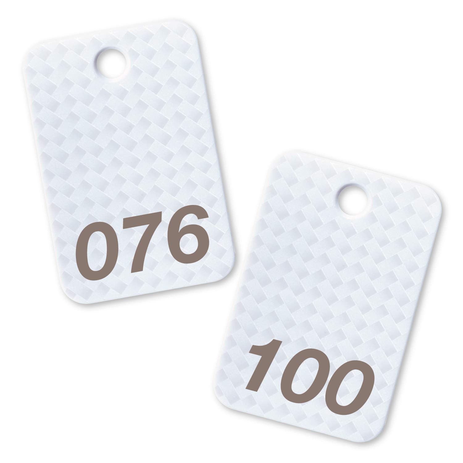 高級感のある網目柄の角型番号札 荷物のお預かりや順番待ちの整理券として使用できます。 【サイズ】W40×D60×H2.7 【穴径】約6.5mm 【入り数】25枚 【内容】番号札76~100 【材質】再生PS 【生産国】日本