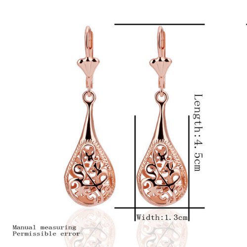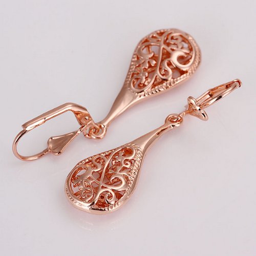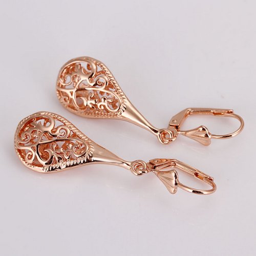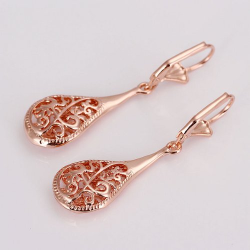 -. Title : Arlumi Rose Gold plated allover Filigree Teardrop Lever-back Dangle Earrings, Nickel-free Hypoallergenic
