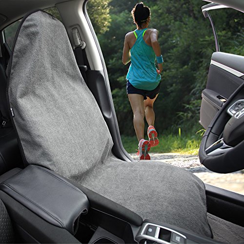 MATERIAL-Very soft towel, 100% waterproof, sweat-absorbent, bacteria-resistant and machine washable. Special Anti-slip backing to keep the seat cover in place, won't slide off the seat when entering or exiting the car. THE BEST CHOICE FOR YOU IF YOU WORKOUT AND SWEAT A LOT.