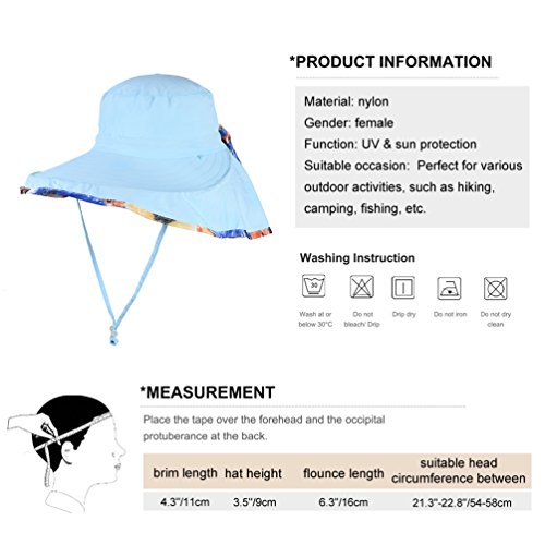 Information Vbiger folding sun hat is a must-have companion for you in hot summer! Its great breathable and moisture-wicking performance will keep you cool when you are hiking, camping, climbing, fishing or doing other outdoor activities. Features Material: nylon Gender: female Size(about): brim length 4.3"/11cm; hat height 3.5"/9cm; flounce length 6.3"/16cm; suitable head circumference between 21.3"-22.8"/54-58cm Color: as the pictures show Package list: 1* sun hat Notice * The actual color may vary slightly from the online image due to monitor color settings. * Please allow slight measurement deviation for the data. 0