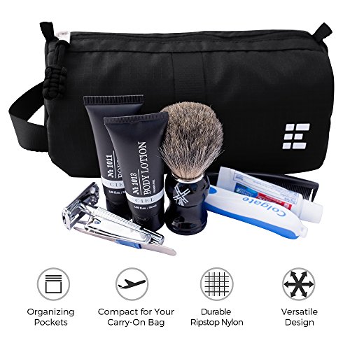 -. Feature : Liquid-resistant Shaving Kit Bag, prevents suitcase messes. / Durable RipStop Nylon Ditty Bag, won't fray, rip or break. / TSA Approved for Travel, 100% Lifetime Money-Back Guarantee. / Our Toiletries Bag measures 9.8" long by 5.5" in diameter. / Suitable for use as women's toiletry bag or makeup bag