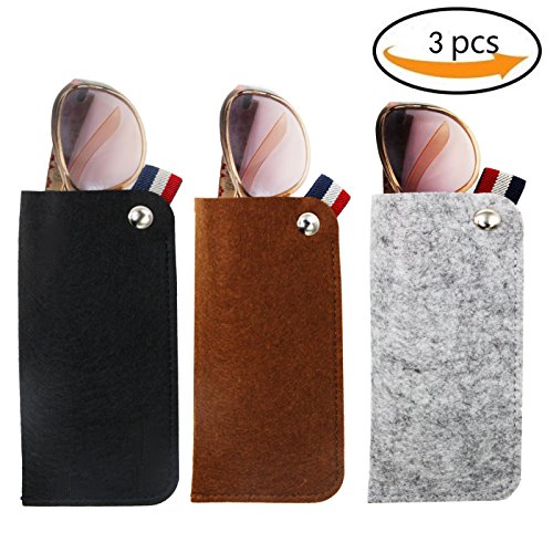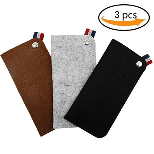 ZZ Sanity 3 Pack Felt Eyeglass Sunglasses Case Pouch,Soft Portable Slip In Pocket Glasses Pouch Case