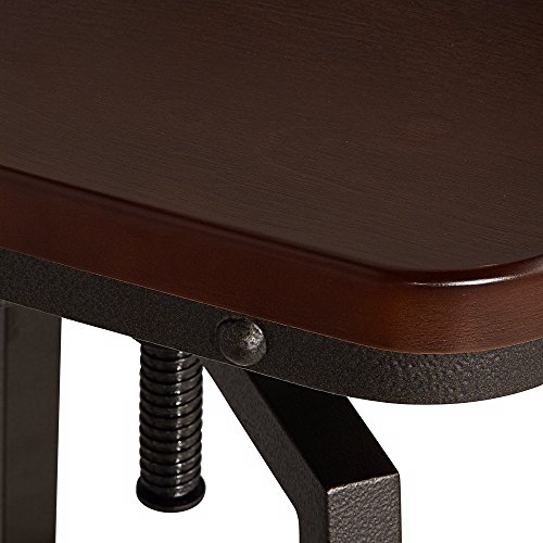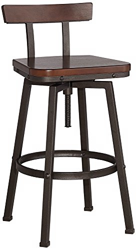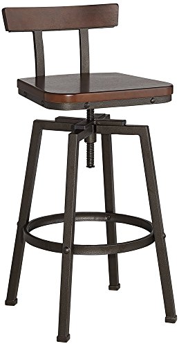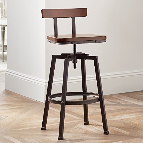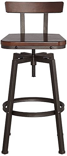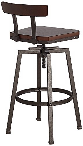 -. Brand : Elm Lane -. Color : Brown -. EAN : 0736101682028 -. Feature : Adjusts from 32 1/4" to 37 1/2" high x 16 1/2" wide x 15" deep. Weighs 21.14 lbs. / Seat adjusts from 24 3/4" to 30" high x 15" wide in front x 12 1/2" wide in the back x 14" deep. / The design can go from counter stool height to bar stool height. / Metal rectangular tube construction frame with hammered bronze finish. / Seat is solid wood back, MDF seat, both in a dark brown finish. -. Label : Elm Lane -. Manufacturer : Elm Lane -. MPN : FB1174-1 -. PackageQuantity : 1 -. PartNumber : FB1174-1 -. ProductGroup : Furniture -. ProductTypeName : HOME_FURNITURE_AND_DECOR -. Publisher : Elm Lane -. Studio : Elm Lane -. Title : Roark Dark Wood Hammered Bronze Adjustable Swivel Barstool -. UPC : 736101682028