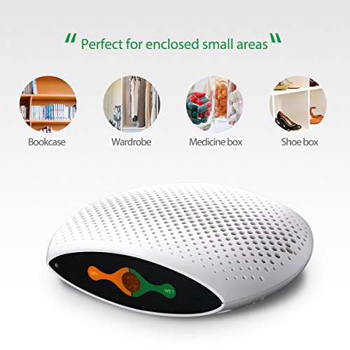 - Completely Silent. No annoying sound. No wires or power needed during operation. Perfect for the enclosed areas, such as wardrobe, cabinet, bookcase, clothes organizer, electrical products case, safe, RV, car, inside piano, small bedroom, kitchen, and bathroom etc.