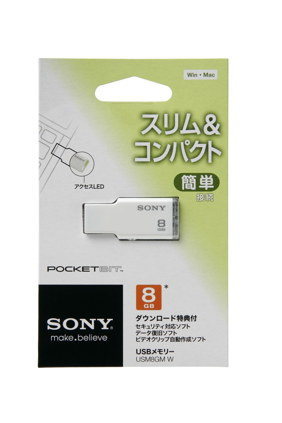 SONY Slim & compact USB memory pocket bit 8GB white cap-less USM8GM W