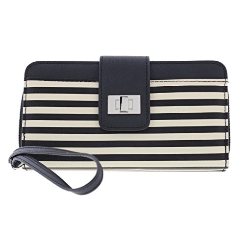 Title : Kenneth Cole Reaction Womens Faux Leather Striped Wristlet Wallet Black-Ivory