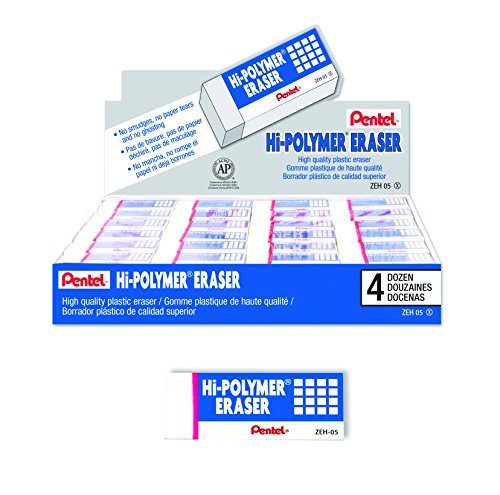 Pentel Hi-Polymer erasers remove lead easily and cleanly with little pressure. No smudges, no paper tears, no ghosting. High quality, latex-free erasers do not crack or harden with age. Block erasers include protective sleeve. Small block for corners, large block erases large areas.