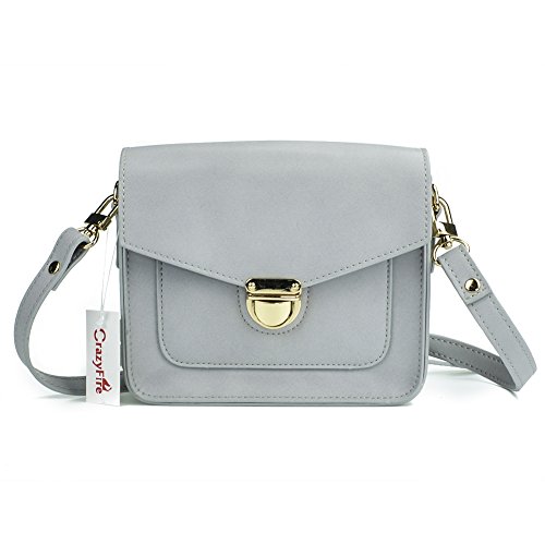 CrazyFire Retro Women Shoulder Bag PU Leather Lady Satchel Messenger Bag(Grey)