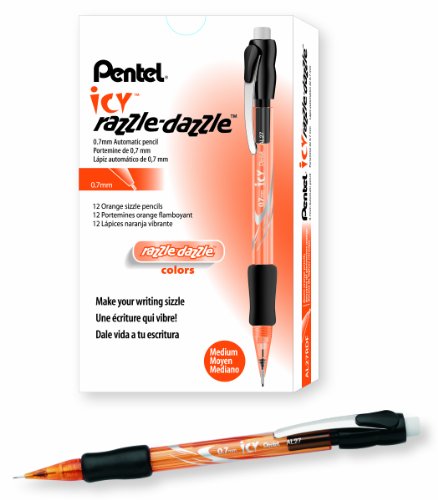 Pentel Icy Razzle-Dazzle Automatic Pencil, 0.7mm, Orange Sizzle Barrel, Box of 12 (AL27RDF)