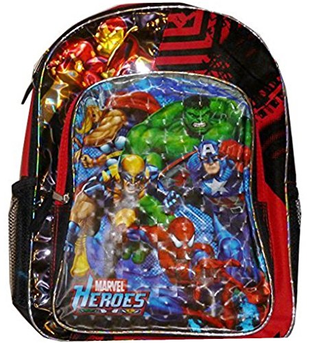 Marvel Heroes Red/Black Full Size Backpack. Adjustable Shoulder Straps are Padded for Carrying Comfort. Zipper Closure, Features one Main Compartment, one Front Compartment and Two side mesh Pockets. Contains Small Hang Loop for Locker or Closet Hanging.