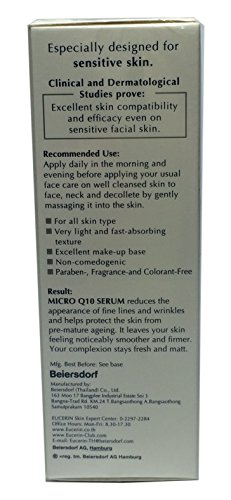 - Feature : MICRO Q10 SERUM reduces the appearance of lines and wrinkles. / Helps protect the skin from pre-mature ageing. / Leaves your skin feeling noticeably smoother and firmer. / Your complexion stays fresh and matt. / Especially designed for sensitive skin.