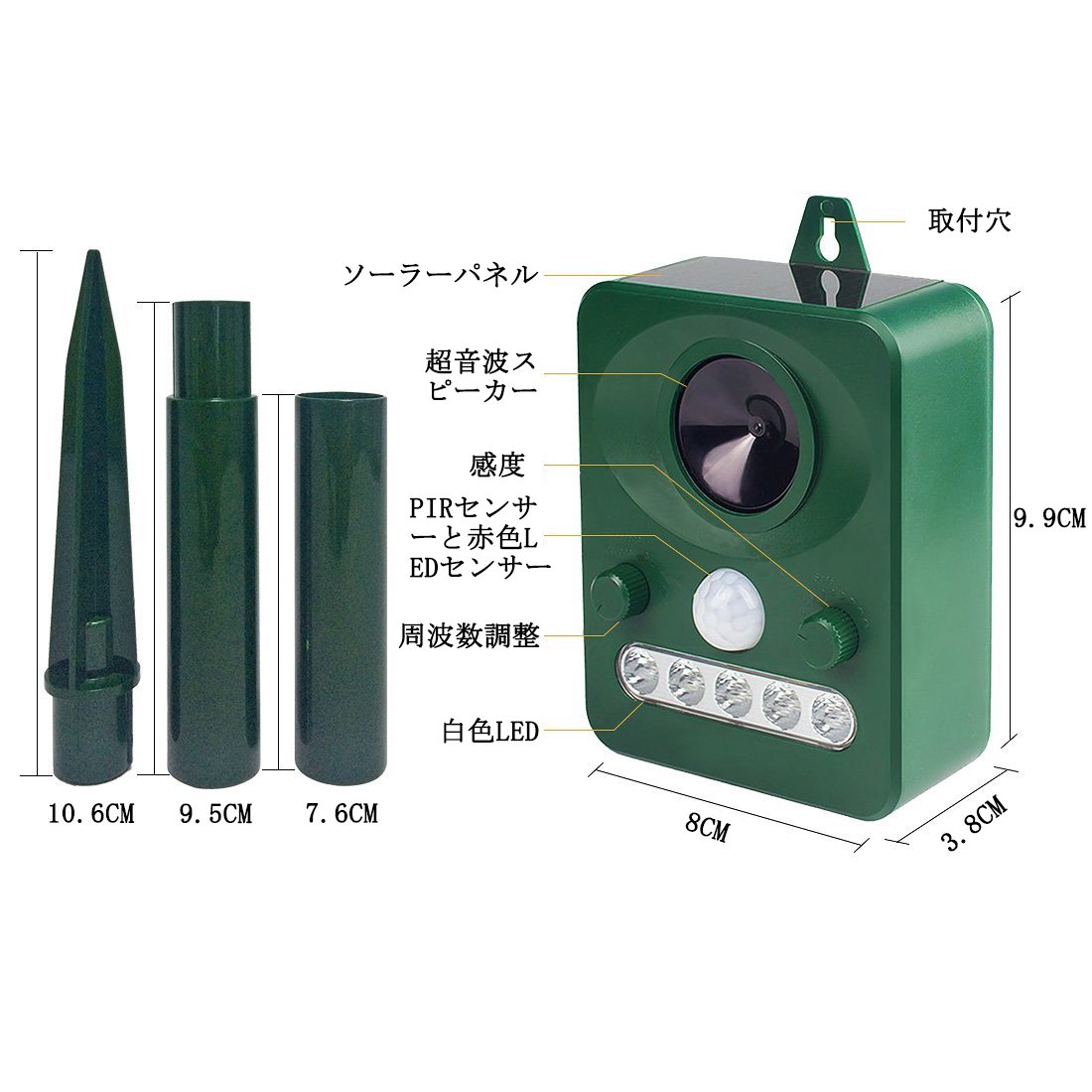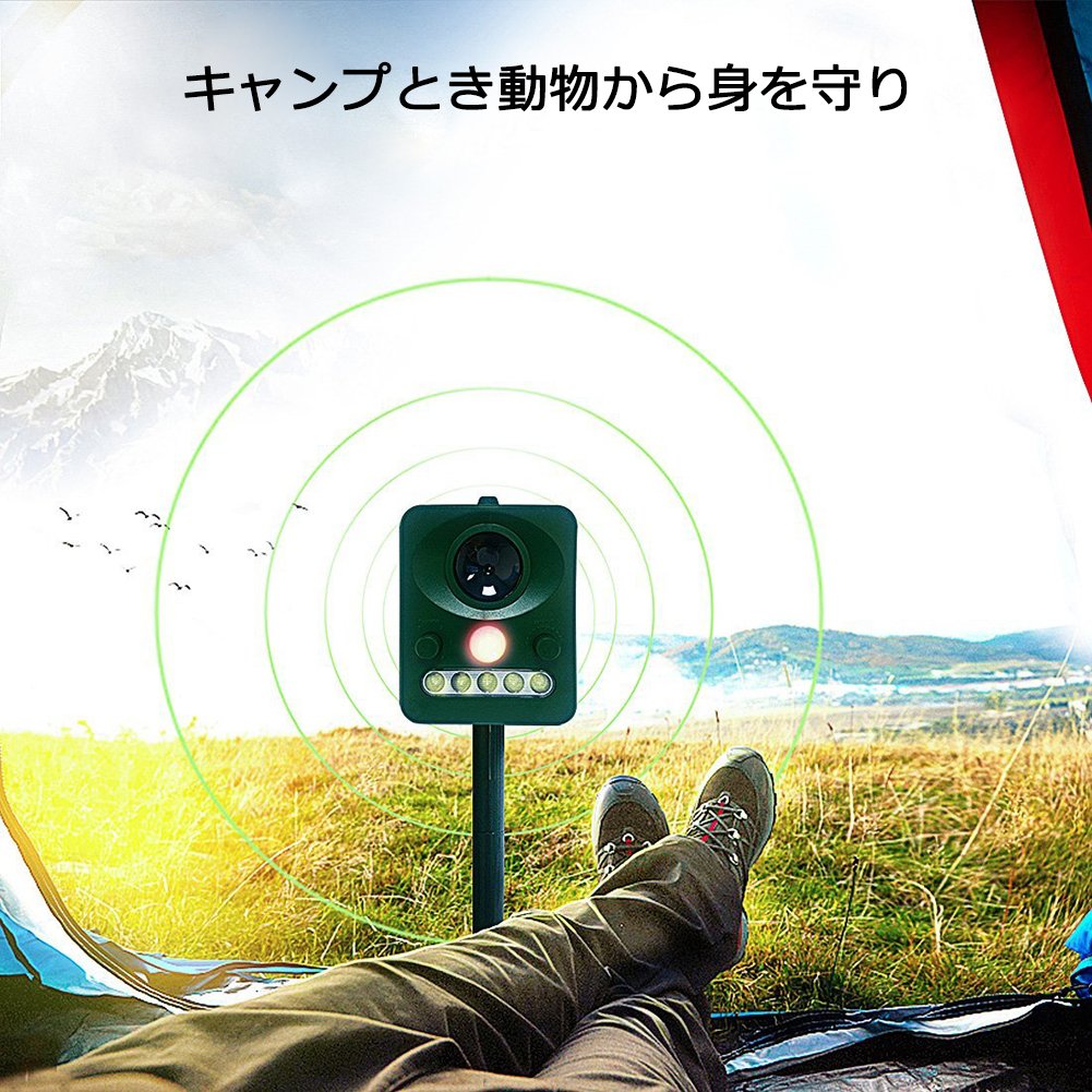 Animal repeller: The device will release high frequency ultrasound and strong flash, causing animals to panic and discomfort, escape from that range.