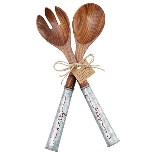 Product Description2-piece set. Mango wood serving utensils feature galvanized tin handles with printed "merry" sentiment.0