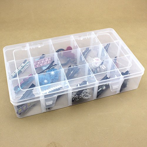 Plastic Jewelry Box Organizer Storage Container With Adjustable Dividers 15(Large)Grids by Rekukos