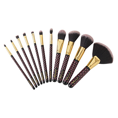 The Pink-A-Dot Brush Set contains 11 synthetic brushes, and comes in a durable cylindrical case. Both case and handles feature an adorable pink and black polka dot pattern. Brushes include: Deluxe Fan Brush, Powder Brush, Angled Blush Brush, Classic Foundation Brush, Tapered Shadow Blending Brush, Classic Shadow Brush, Flat Eyeliner Brush, Angled Shadow Brush, Small Smudge Brush, Tapered Eye Liner Brush, Lip Brush.Feature