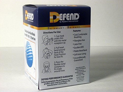 -. Feature : Fluid Resistant Outer Layer, Dye & Ink Free Inner Layer, Splash Resistant Disposable Non-toxic / Latex Free, Blue color Soft, Non-irritationg, breathable Adjustable aluminium nose piece Flexible headband / Cool, Comfortable Breathing / Excellent BFE, Fiberglass Free / Unconditionally Guaranteed