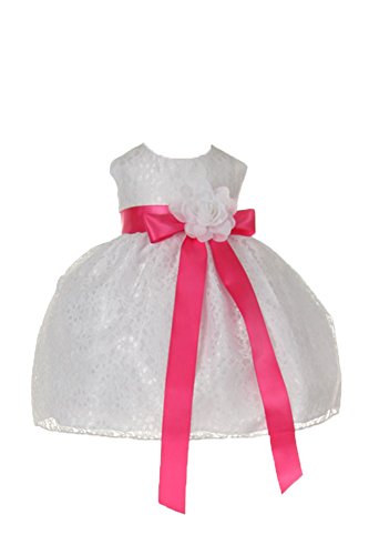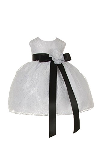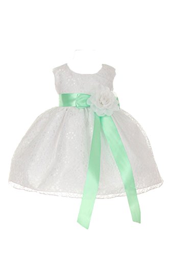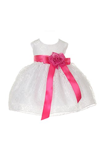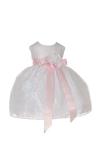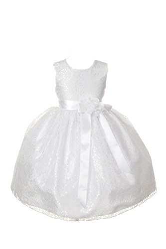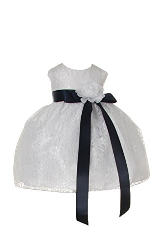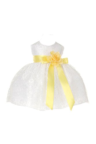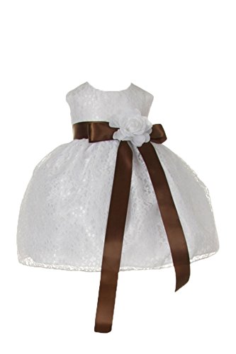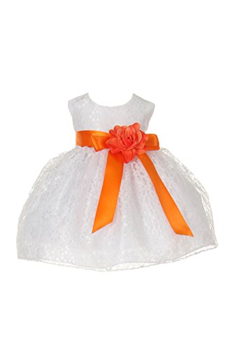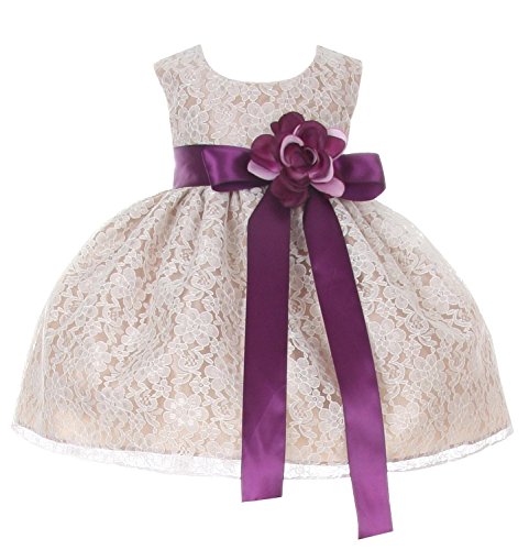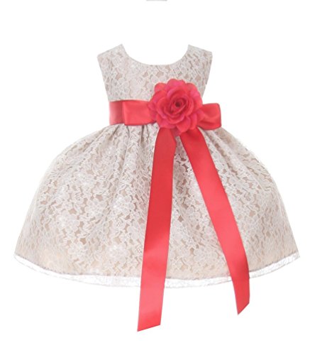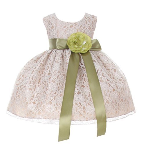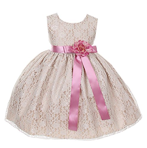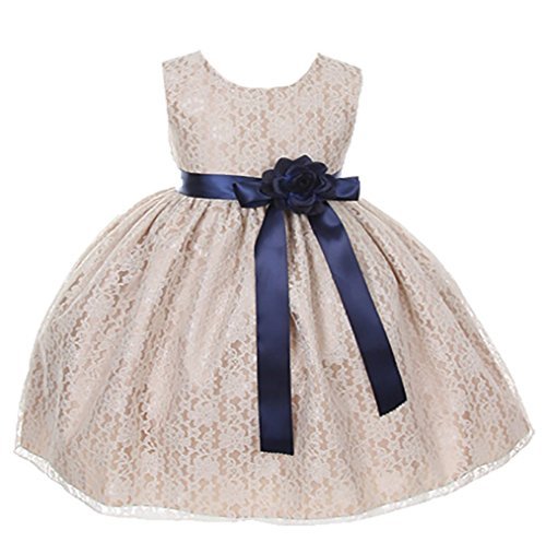 Timeless Elegance . . . New Champagne Flower Girl Dress with Overlay Lace and Coordinating Satin Ribbon Sash and Flower Corsage; Sleeveless Lace Overlaid Bodice; Contrasting Satin Ribbon Waist Sash and Coordinating Corsage Bow; Tea Length Lace Overlaid Skirt with Slip; Back Zippered Closure; 100% Polyester; Dry Clean; Made in USAFeature
