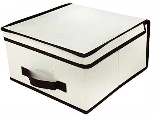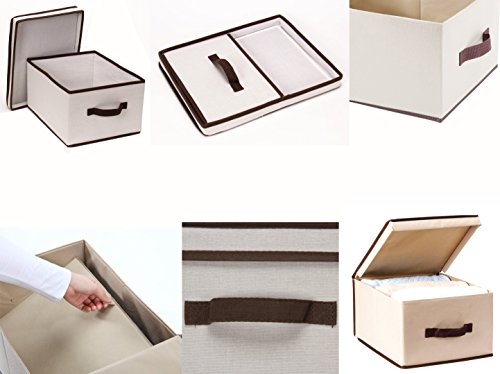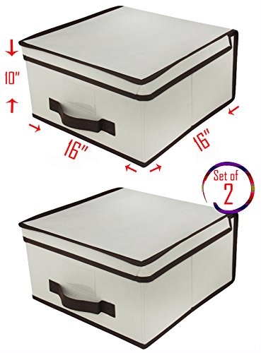 Set of 2 Large Natural Canvas Storage Box with Brown Trim, Convenient Storage Box with Lid and Handle, Size: 15.7 x 15.7 x 9.8''