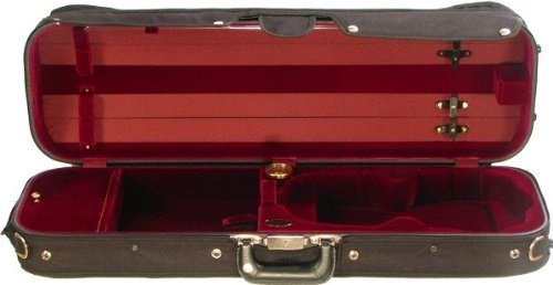 -. Feature : 4/4 Violin Size / Wine Velvet Interior - Black Screw-Attached Waterproof Canvas Cover with Full Zippered Music Pouch and Pencil Pocket - Instrument Suspension / Five-ply, Seamless, Poplar Veneer Construction - Lighter and Thinner - Only 6.5 lbs. / Deluxe German Latch - Leather Handle - Subway Strap - Extra D-ring For Backpack Option - Shoulder Strap Included / Semi-French Fit - Hygrometer - Velcro Neck-Restraint - Tail-Block Sponge - 4 Locking Bow Holders - String Tube - Instrument Blanket