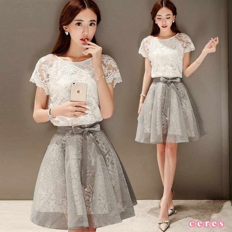 【製品仕様】■商品名エレガントレースの上品セットアップ セットアップ 半袖 レディース パーティードレス ワンピース ひざ丈 パーティー 上下セット デート 合コン 体型カバー フレアスカート S M L XL 2L LL ■商品説明上品レースの上下セット。セットアップでパーティーやデートに。バラバラに着てカジュアルに。コーディネート自由。ワンピース風だから体型カバーもばっちり。授乳中のママにもおすすめ。■サイズ/寸法S M L 2L■素材/材質ポリエステル■色/カラーホワイトセットアップ レディース おしゃれ きれいめ 結婚式 夏 半袖 パーティー ひざ丈 スカート セット