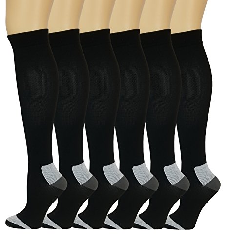 -. Title : 6 Pairs Pack Women Travelers , Anti-Fatigue , Graduated Compression Knee High Socks 9-11