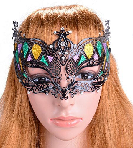 -. Brand : Coxeer -. ClothingSize : One size -. Color : Black Colorful -. Department : womens -. Feature : One size and made in China. / comfortable worn. / Best choice for party, costume ball, prom and so on. / Package includes: 1 x Face Mask / It will have small difference in color for different light and carmer. -. PackageQuantity : 1 -. ProductGroup : Apparel -. ProductTypeName : ADULT_COSTUME -. Size : One size -. Title : Masquerade Mask Metal Venetian Party Evening Prom Mask -. UPC : 705615057899