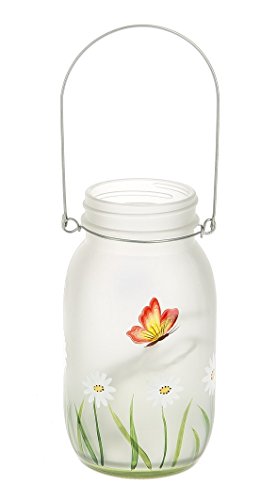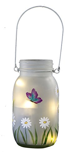 Ganz Spring Time Scene on Decorative Jar Lantern Filled with String Lights with Butterfly Design
