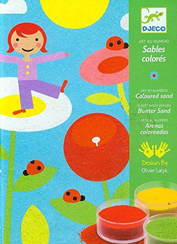 Studio : Djeco Publisher : Djeco Binding : Toy Product Description Learn and new and creative method of creating art with this fun, kid friendly sand painting set by Djeco. The set comes with 4 stenciled images laid out in an "art by number" pattern, each placed on top of a sticky backing, 12 colored sand pots, a dulled cutting tool and the carrying case. To create sand pictures, children simply use the cutting to cut out sections of the picture from the the sticky backing, then place the image in the carry case with their desired color of sand. Shake the sand around the image, dust off an excess, and voila! in no time, you have your very own unique masterpiece! What is even better, unused sand can be easily recycled back into the pots because of a small cut in one corner of the carry case. Simply tilt the case, shake and the sand easily funnels back in! The images in this particular set depict idyllic outdoor scenes of a happy childhood, but many sets are available along the lines of various entertaining themes. Colors in the set include: yellow, lime green, cerulean blue, red-orange, tan, purple, moss green, red, black, white, dark red and lavender. Created in Paris by Olivier Latyk for Djeco, for the artist in us all. 0