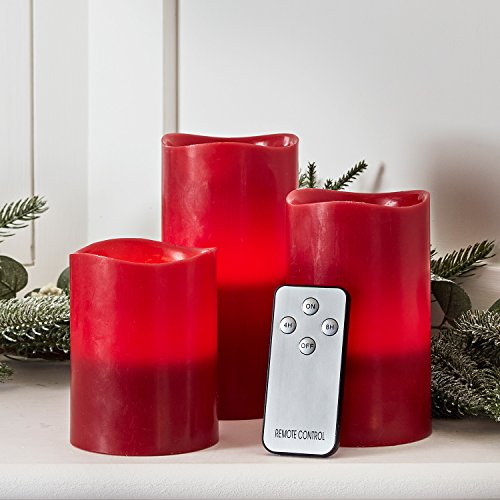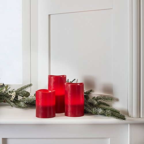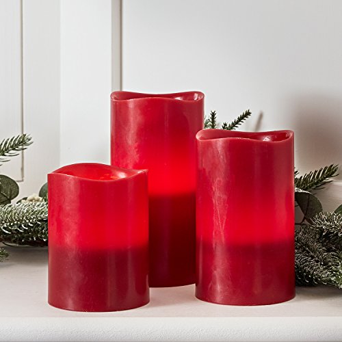 Set of 3 Red Wax Battery Operated Flameless LED Pillar Candles