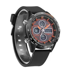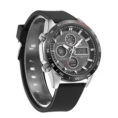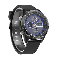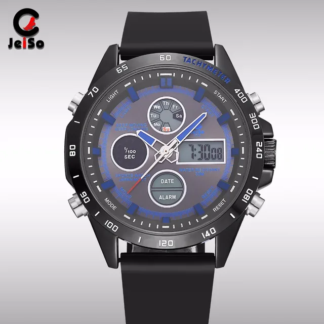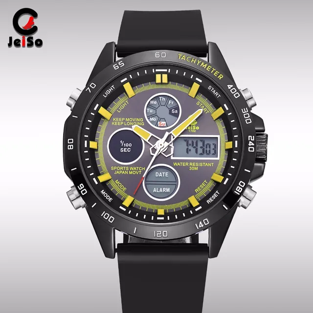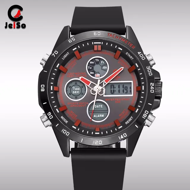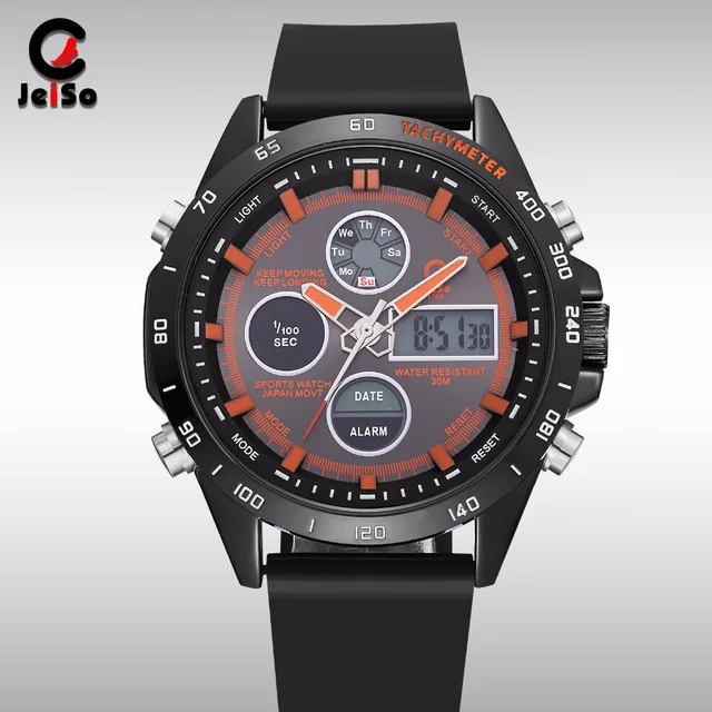 | [해외] JeiSo 스포츠 시계 합금 케이스 PU 밴드 30 메터 방수 라운드 케이스 듀얼 디스플레이 알람 디지털 석영 손목 시계 남자 |