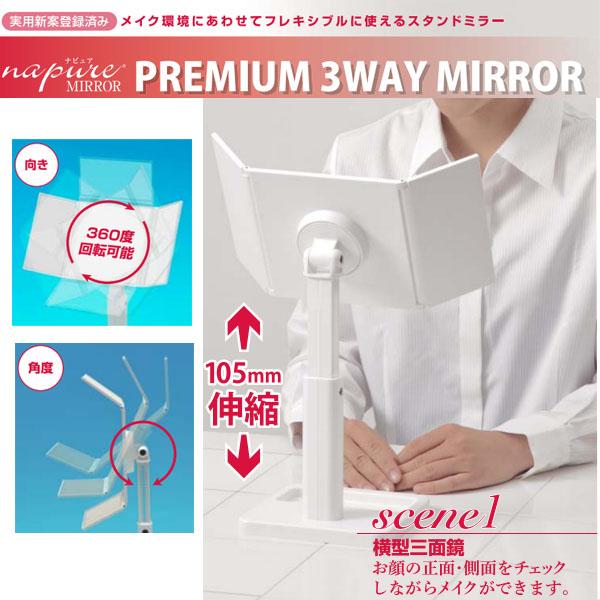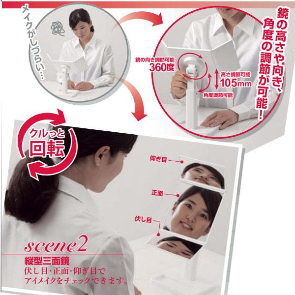 | ナピュアミラー仕様だから、あなたの本当の顔色を映し出します!お顔全体のメイクのみならず、アイメイクなどのポイントメイクもしやすいミラーです。鏡の高さや向き、角度が調節可能!!台座にはちょっとした小物を入れられるスペースが付いています! |