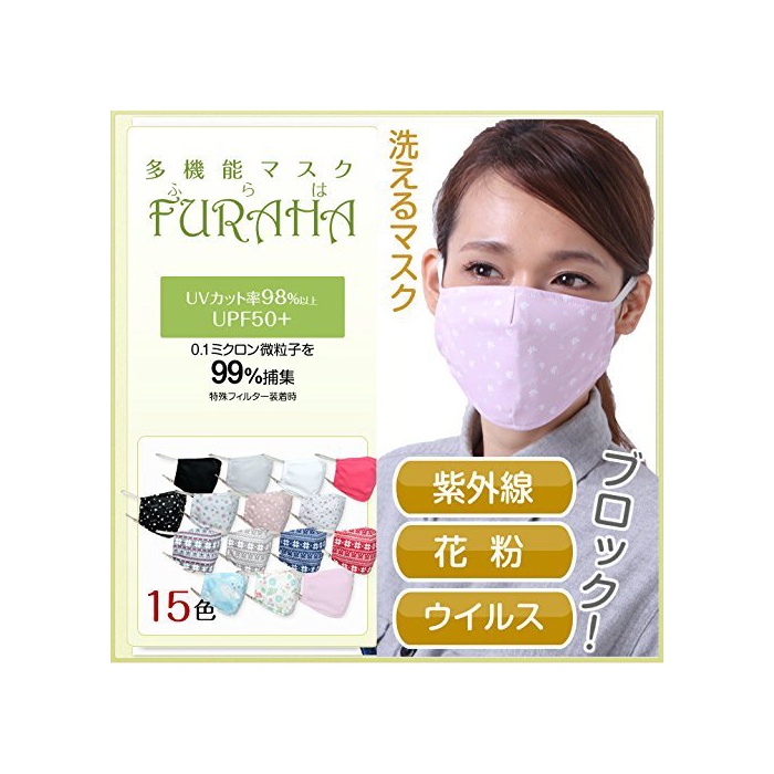 원본상품명: PM2.5??マスク (洗えるマスク+高性能フィルタ?20枚) 紫外線?策 花粉 ウイルス 日本製 FURAHA 無地